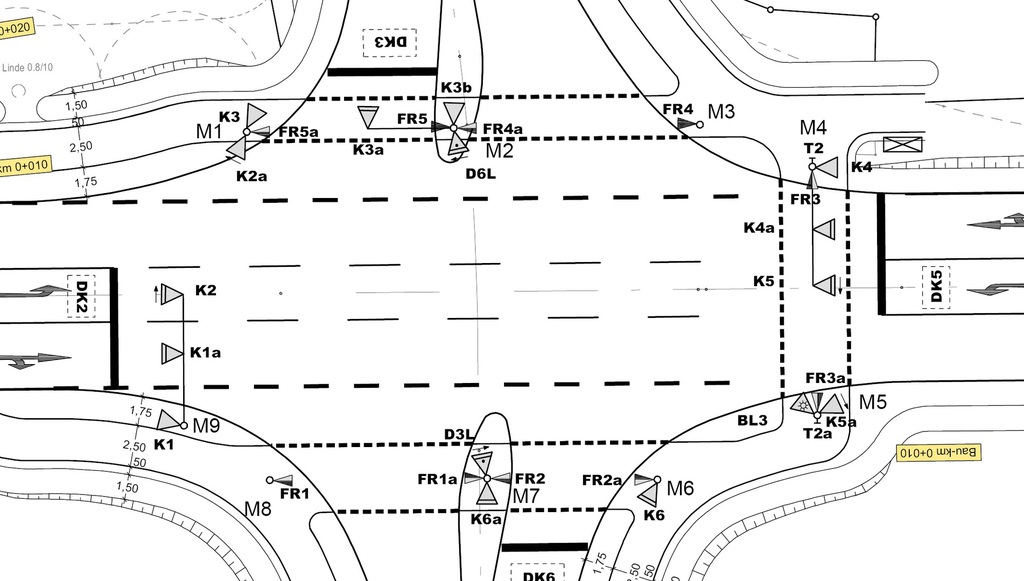 Leistungsfähige und verkehrssichere Knotenpunkte bilden die Grundlage für funktionierende Verkehrsnetze. Der Umbau zu Kreisverkehren führt oftmals zu einer Verbesserung der Verkehrsqualität und Verkehrssicherheit. Hoch belastete Knoten erfordern häufig eine Signalsteuerung. Die sekundengenaue Optimierung von Signalzeitenplänen unter Berücksichtung von Verkehrsabhängigkeiten ist ein Anspruch den wir an uns haben. Wir können Ihnen eine Simulation von Knotenpunkten und Streckennetzen erstellen und daraus die relevanten Auswerteparameter ableiten. Diese kann als Video präsentiert wirkungsvoll zur Veranschaulichung und Erhöhung der Akzeptanz genutzt werden. Wir berechnen die Verkehrsqualität aller Verkehrsanlagen auf der Basis des HBS 2015.